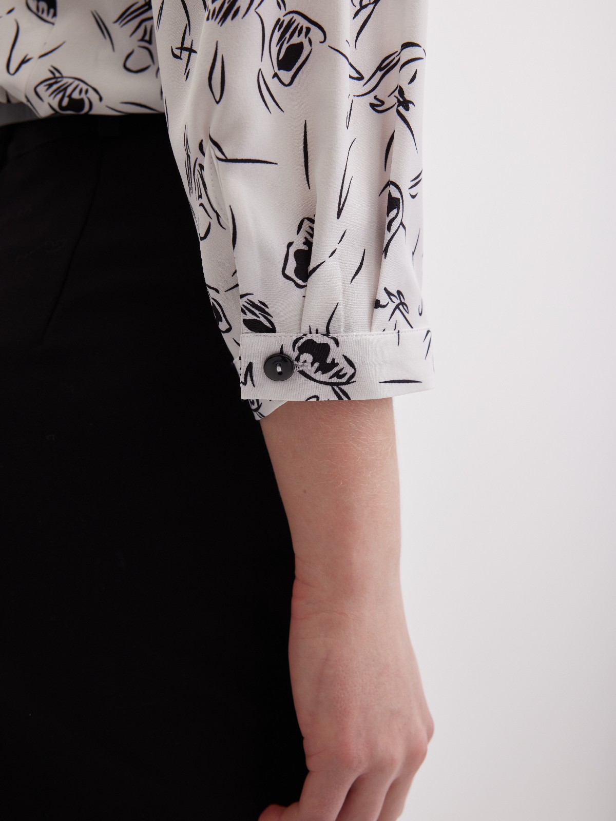 Блузка с мягкими складками и монохромным принтом
