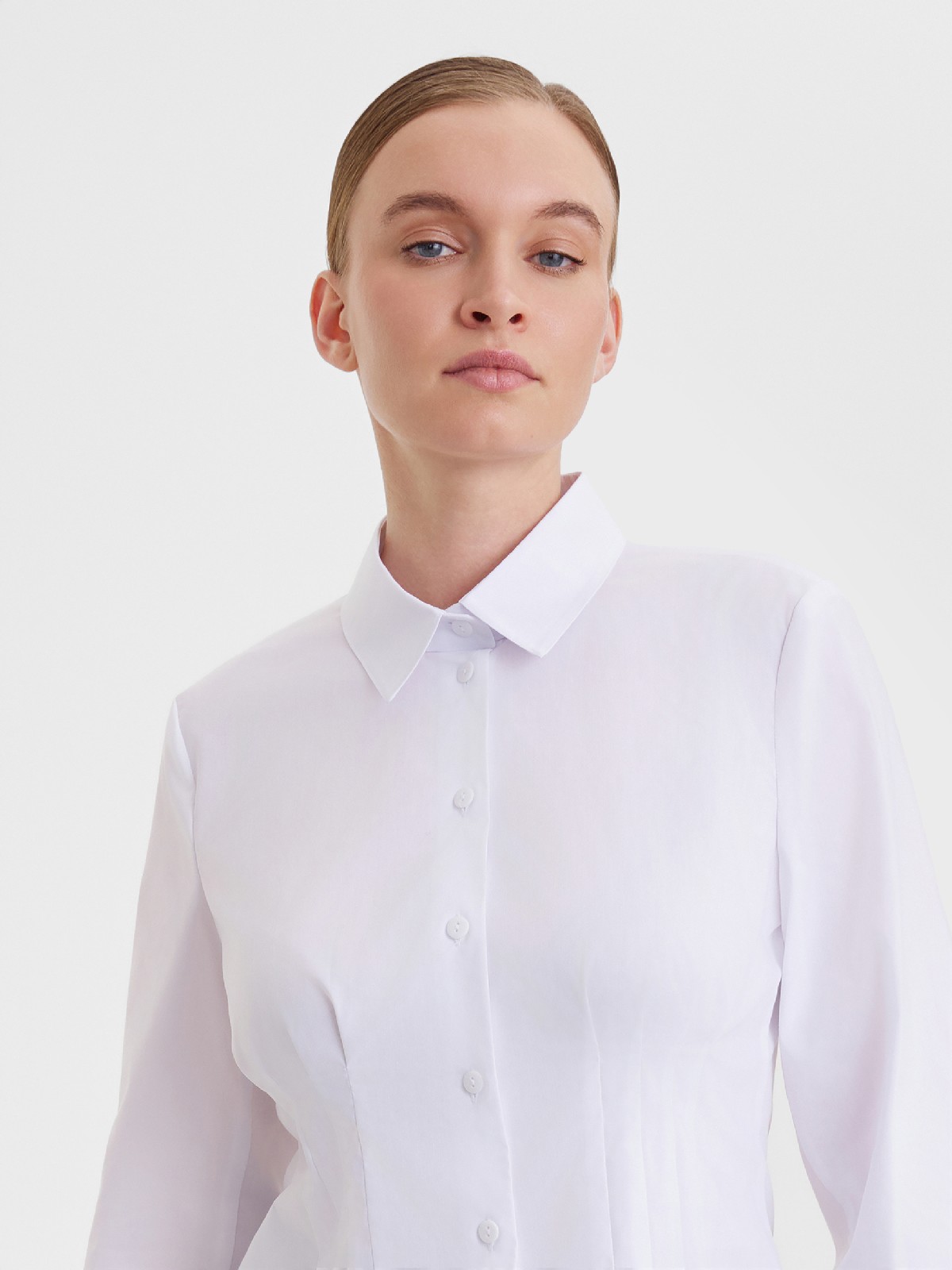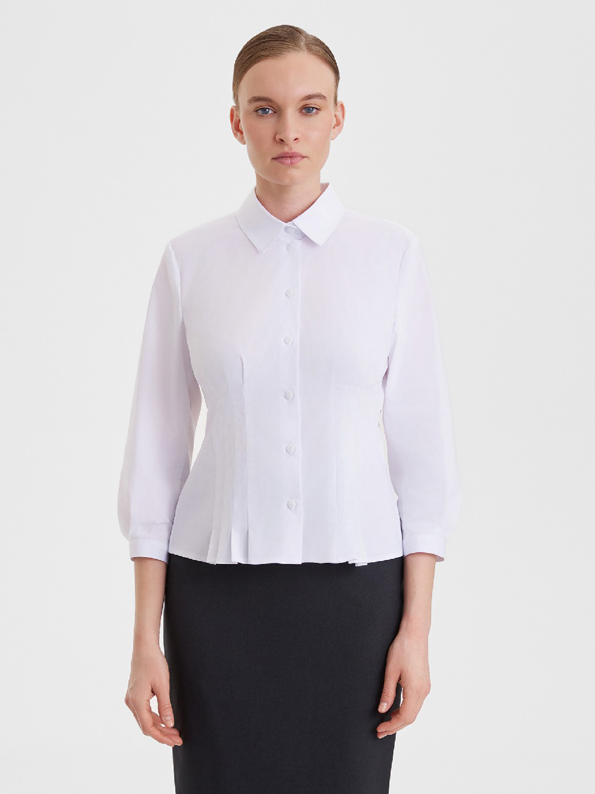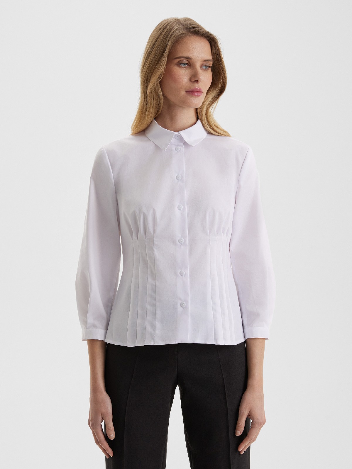 Блузка-сорочка с вертикальными защипами по талии