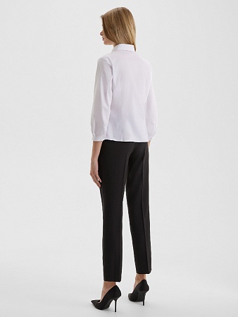 Белая рубашка из сорочечной ткани  с изумительной вышивкой в виде пышного и изящного цветения нежно-розовой японской вишни , выполненной шелковыми нитками, приталенный силуэт, рубашечный воротник, застежка на мелкие пуговицы, модель удлиненная с фигурным низом,   втачной рукав длиной 3/4.