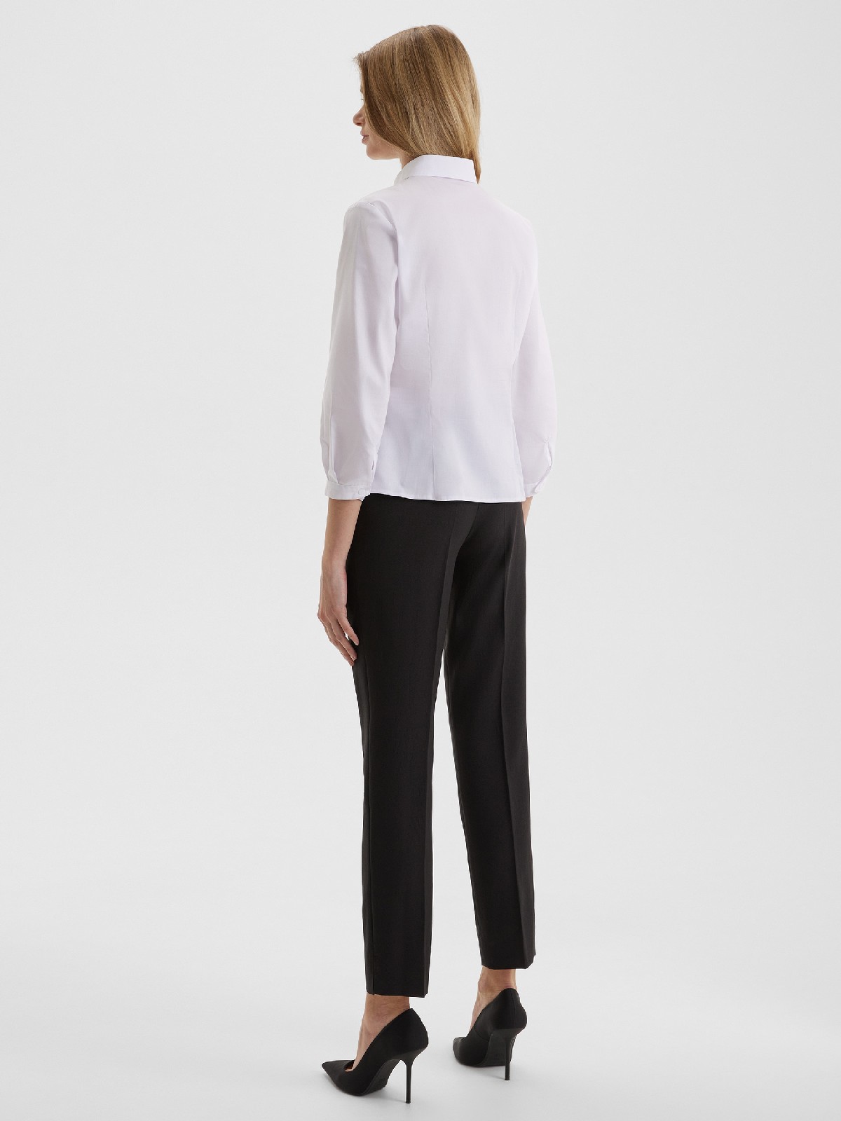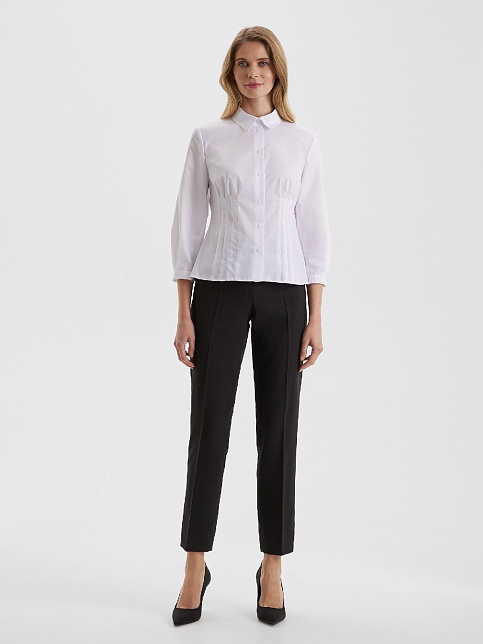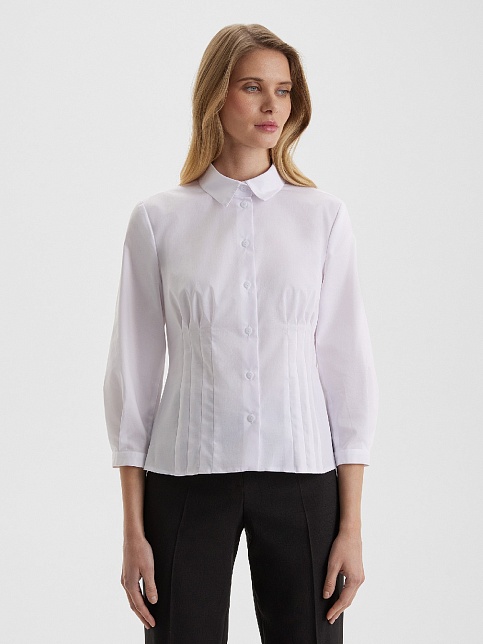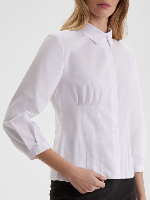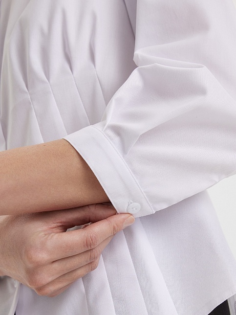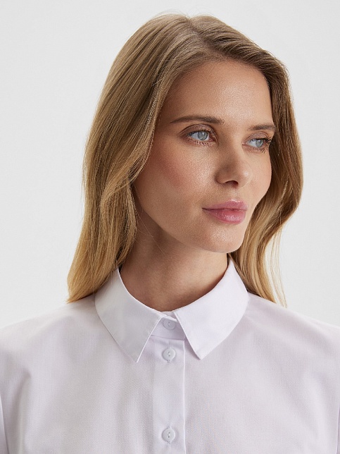 Блуза белая укороченная, с рукавом 3/4, воротник на стойке