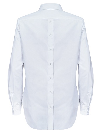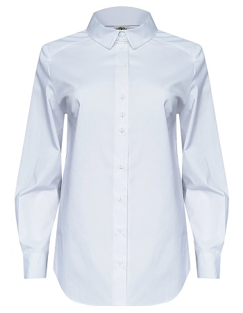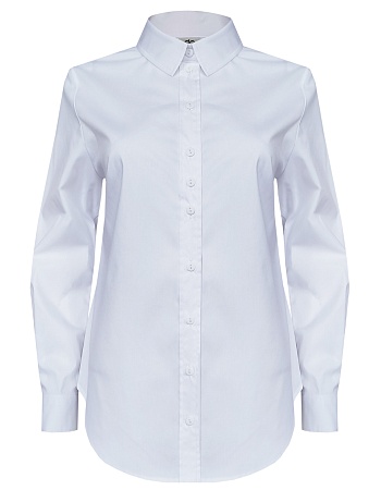 Комфортная блуза из смесовой хлопковой ткани, где в качестве натуральной основы преобладают хлопковые волокона растительного происхождения, рисунок из продольных бежевых полосок визуально стройнит фигуру, отсутствие талиевых вытачек создают комфорт при движении, средняя длина, отложной воротник на стойке, застежка на мелкие пуговицы, фигурный низ, длинный втачной рукав на манжете с функциональной петлей и пуговицей.