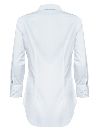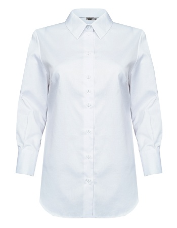 Блузка рубашка из невесомой сорочечной ткани в базовом белом цвете с рукавами из уникальной и изысканной ткани с вышивкой ришелье, спущенная линия плеча выглядит мягче и уютнее, особый крой без вытачек придает изделию свободный и расслабленный вид, отложной воротник, удлиненная с фигурным низом, застежка на пуговицы, длинный втачной рукав на манжете с функциональной петлей и пуговицей. Модель актуальна для женщин любого размера и телосложения, даже если фигура далека от идеала.