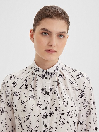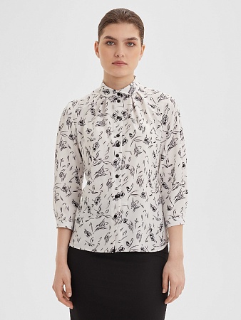 Блузка с мягкими складками и монохромным принтом
