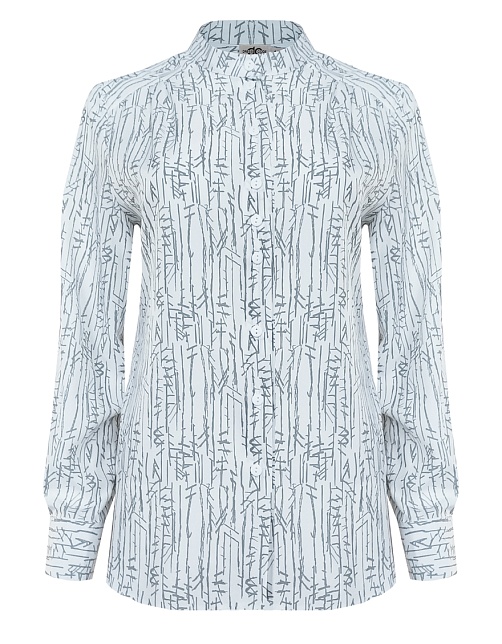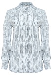 Изысканная блуза из шелковистого и струящегося материала с содержанием  вискозных волокон, нейтральный молочный фон придает образу легкость и утонченность, а абстрактный принт в натуральных оттенках делает его идеальной базой для создания минималистичных, но впечатляющих ансамблей, средняя длина, приталенная, небольшой воротник стойка, по цельнокроеной кокетке спереди заложены мягкие складки, застежка на пуговицы, длина рукава 3/4 на манжете с функциональной петлей и пуговицей.