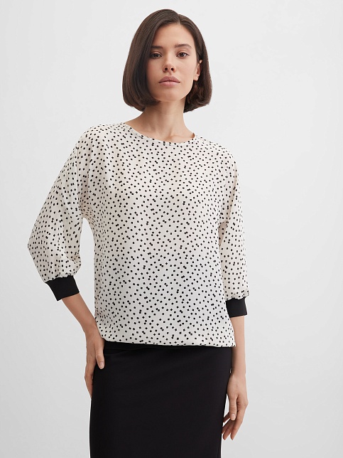 Блузка свободная с цельнокроеным рукавом и трикотажными манжетами