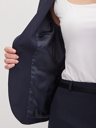 Брюки широкого кроя благородного синего цвета из поливискозной ткани, комфортная классическая посадка, модель на внутренней обтачке, без пояса и складок в области талии, застежка на молнию сбоку, заутюженные стрелки, низ обработан от осыпания ткани, но не подогнут - что позволяет скорректировать длину брюк под свой рост. Поливискозная ткань - это смесовая ткань, в состав которой входят волокна вискозы и полиэстера. Именно полиэстер придает ткани прочность, долговечность и опрятный вид.