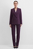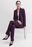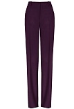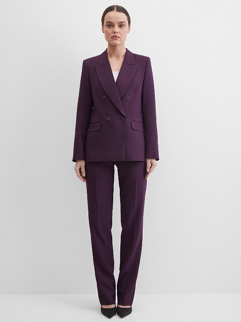 Классические брюки прямого кроя из поливискозной ткани в роскошном баклажановом цвете, удобная резинка по талии обеспечивает свободу движений и комфорт, помогает скрыть некоторые недостатки фигуры и сгладить ее, без пояса, на внутренней обтачке, шлевки под ремень, посадка средняя, застежка на молнию и пуговицу спереди, заутюженные стрелки, низ обработан от осыпания ткани, но не подогнут - это позволяет скорректировать длину брюк под свой рост, без подкладки и карманов.