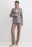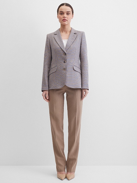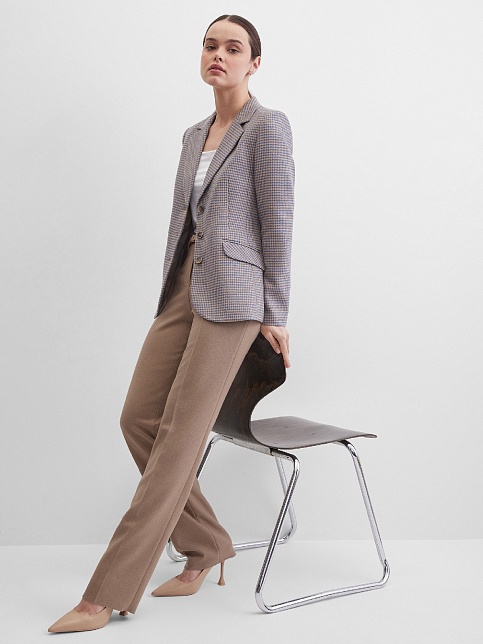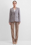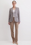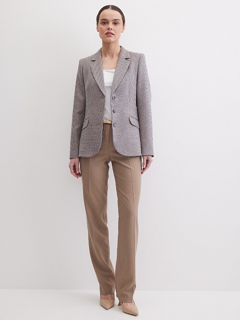 Классические брюки прямого кроя из поливискозной ткани в спокойном  бежевом оттенке для повседневного образа, удобная резинка по талии сзади  обеспечивает удобство и комфорт, не стесняя и не вызывая дискомфорта, шлевки под ремень, посадка средняя, застежка на молнию и пуговицу спереди, заутюженные стрелки, низ обработан от осыпания ткани, но не подогнут - это позволяет скорректировать длину брюк под свой рост, без подкладки и карманов.