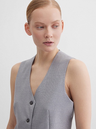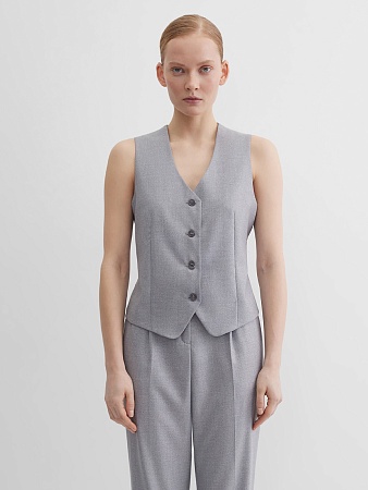 Классические брюки прямого кроя из поливискозной ткани серого цвета, модель без пояса, на внутренней обтачке и шлевками под ремень, небольшая складка по переду добавляет объем и комфорт, посадка средняя, застежка на молнию и пуговицу спереди, заутюженные стрелки, низ обработан от осыпания ткани, но не подогнут - это позволяет скорректировать длину брюк под свой рост, без подкладки и карманов. Поливискозная ткань - это смесовая ткань, в состав которой входят волокна вискозы и полиэстера.