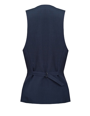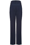 Брюки свободного кроя из костюмной ткани высокого качества темно-синего цвета, который считается универсальным в базовом гардеробе, средняя посадка, без пояса, на внутренней обтачке и шлевками под ремень, застежка на молнию и пуговицу спереди, умеренно объемные в области бедер за счет складок по передней части, боковые карманы с отрезным бочком, заутюженные стрелки, низ обработан от осыпания ткани, но не подогнут - что позволяет скорректировать длину брюк под свой рост, без карманов и подкладки