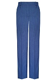 Легкие брюки свободного кроя цвета темно-синего денима из смесовой ткани льняной структуры, удобная резинка по талии обеспечивает удобство и комфорт, не стесняя и не вызывая дискомфорта, шлевки под ремень, посадка средняя, имитация гульфика заменяет застежку на молнию и пуговицу, боковые карманы с отрезным бочком, заутюженные стрелки, низ обработан от осыпания ткани, но не подогнут - это позволяет скорректировать длину брюк под свой рост, без подкладки.