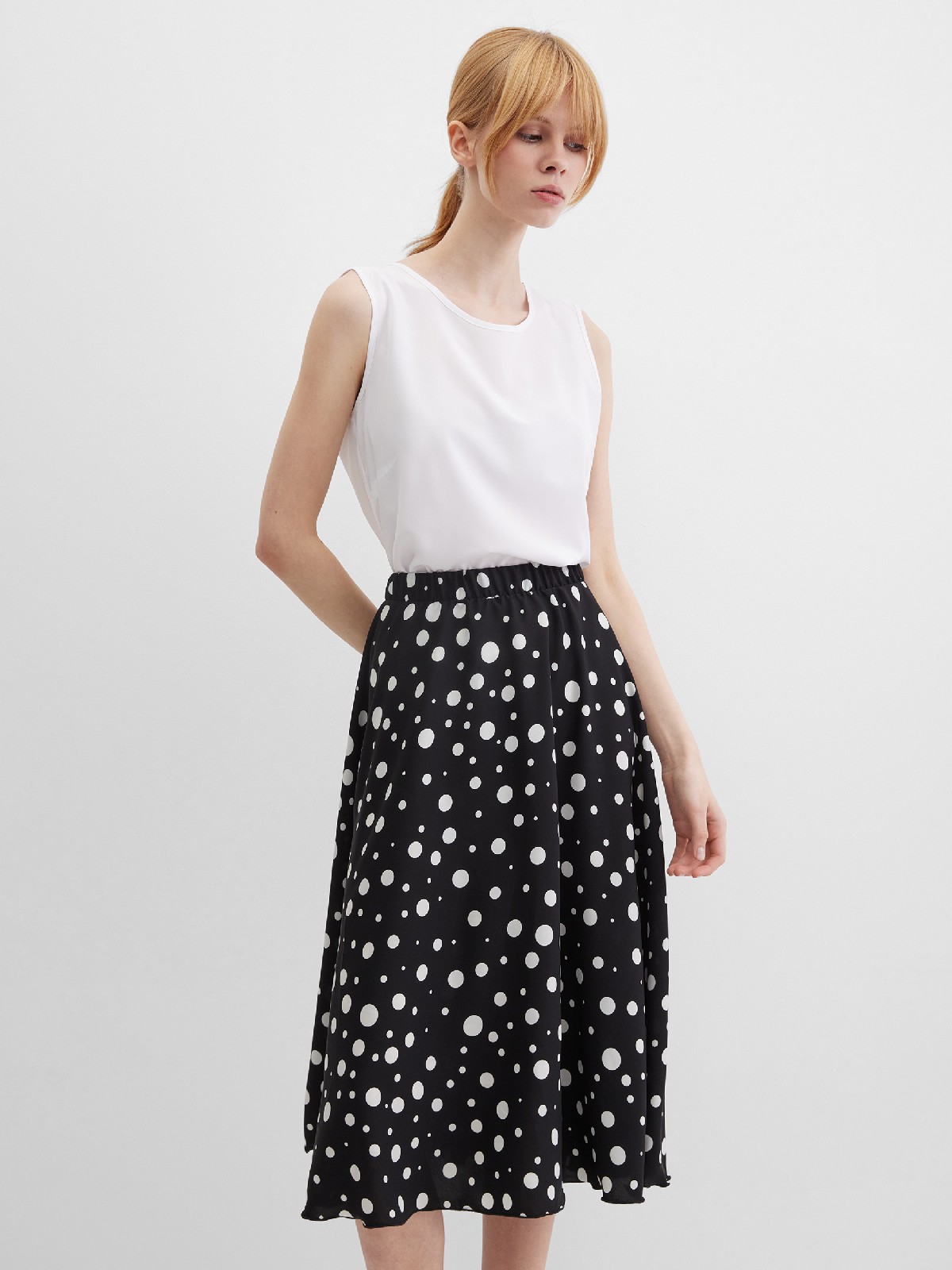 Юбка широкая на резинке удлиненная в горох