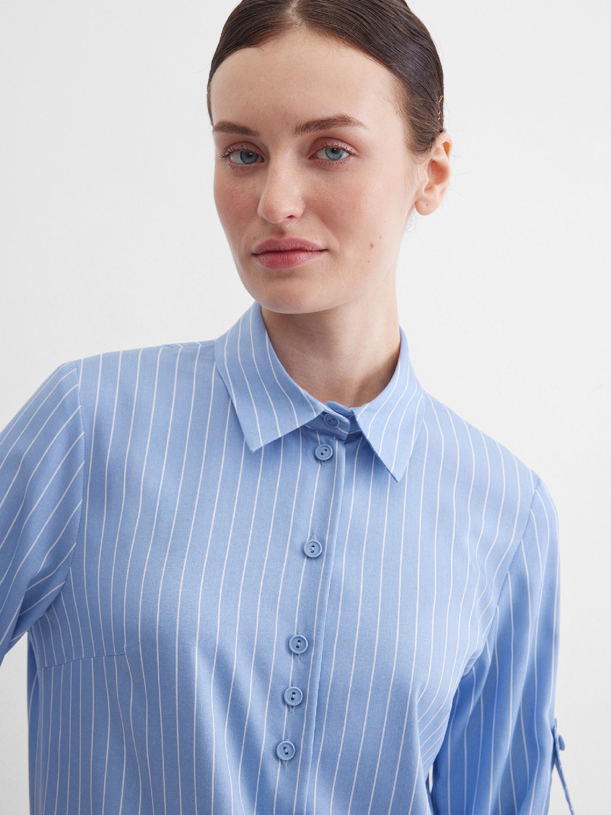 Блузка в тонкую полоску удлиненная