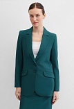 Элегантный жакет из поливискозной ткани в насыщенном изумрудном цвете с легким меланжевым эффектом, комфортная длина прикрывающая бедра, приталенный, однобортный, английский воротник, прорезные карманы с клапаном (функциональные), круглый борт, застежка на пуговицы, на спинке шлица, длинный втачной рукав с декоративной шлицей и рядом мелких пуговиц, тонкие подплечники, модель на подкладке. Поливискозная ткань - это смесовая ткань, в состав которой входят волокна вискозы и полиэстера.