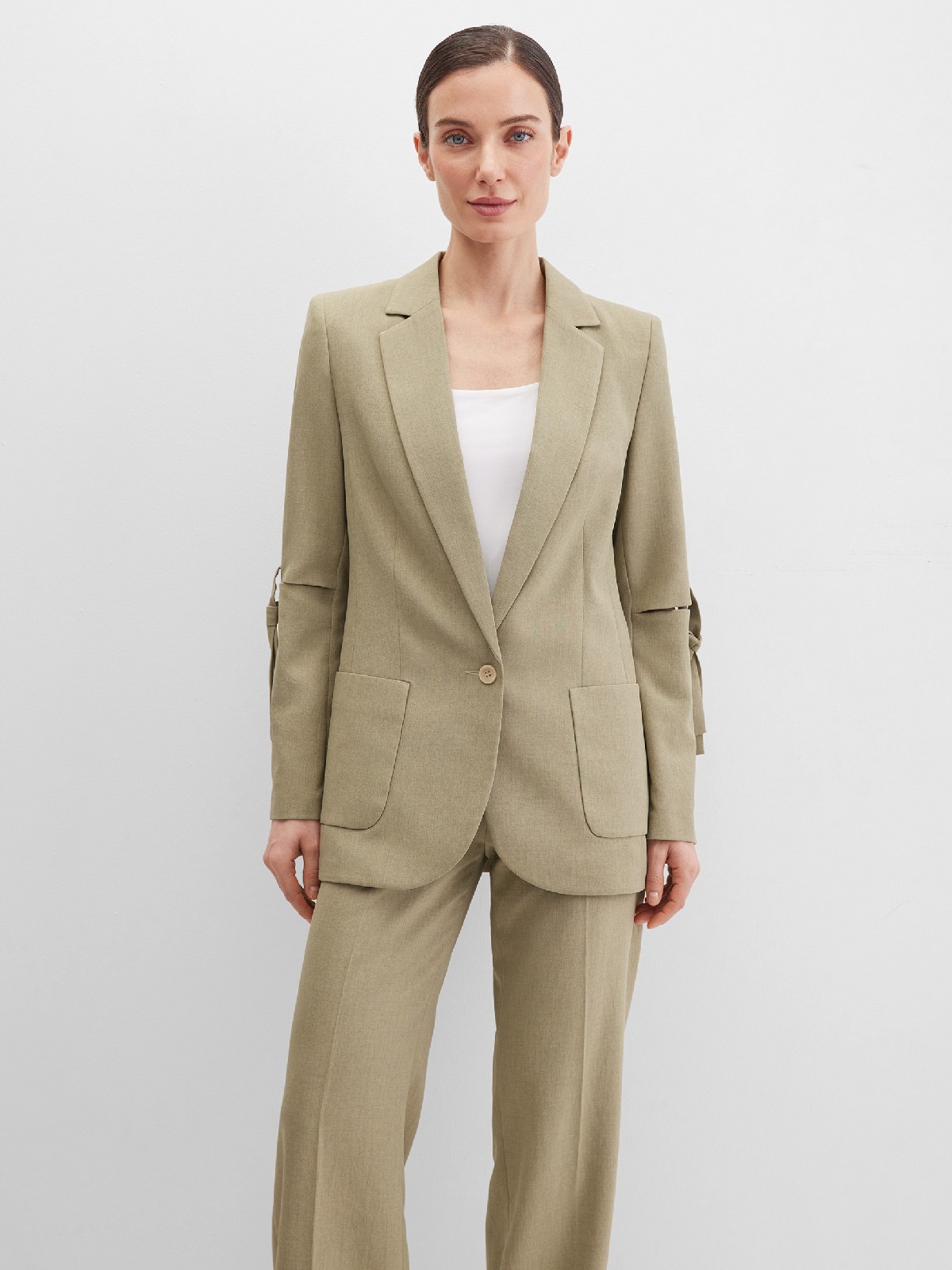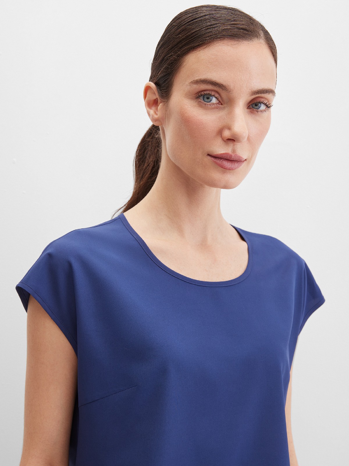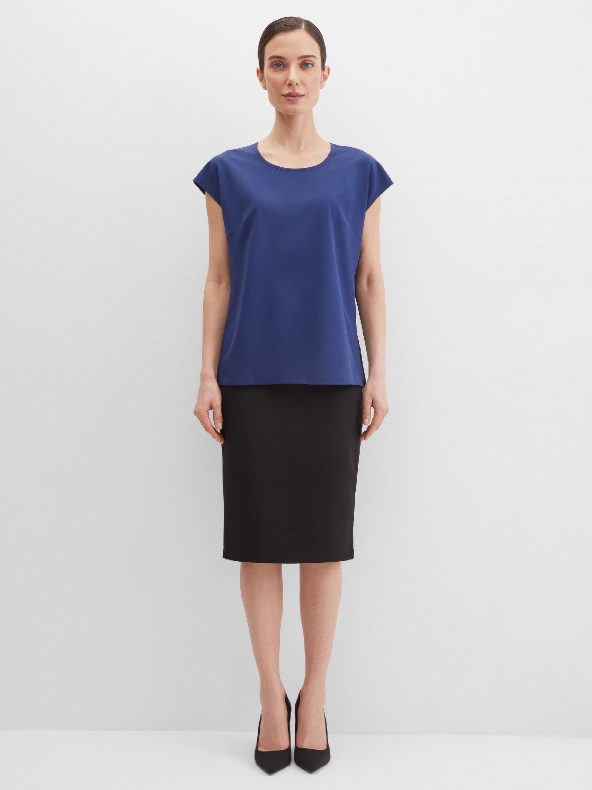 Блузка свободная с цельнокроеным рукавом и трикотажными манжетами