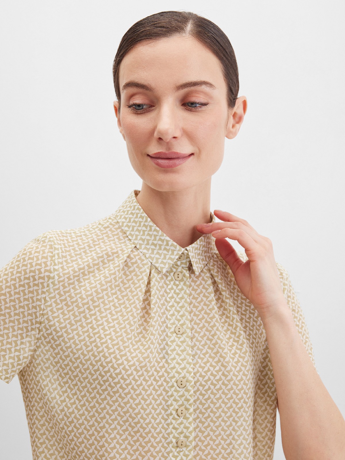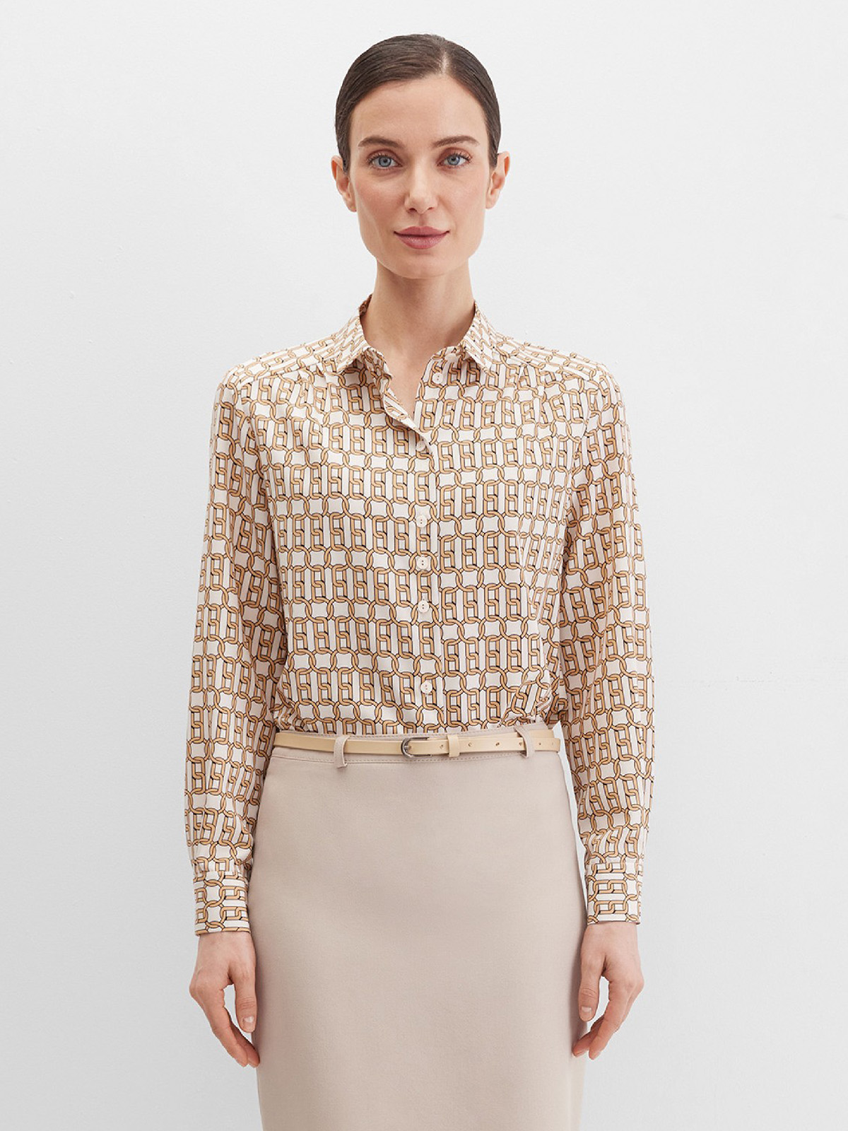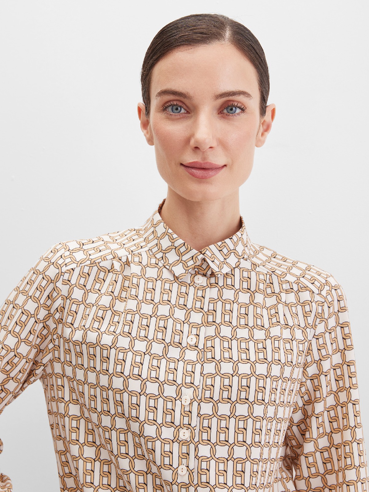 Блузка свободная на резинке с оригинальным вырезом и принтом