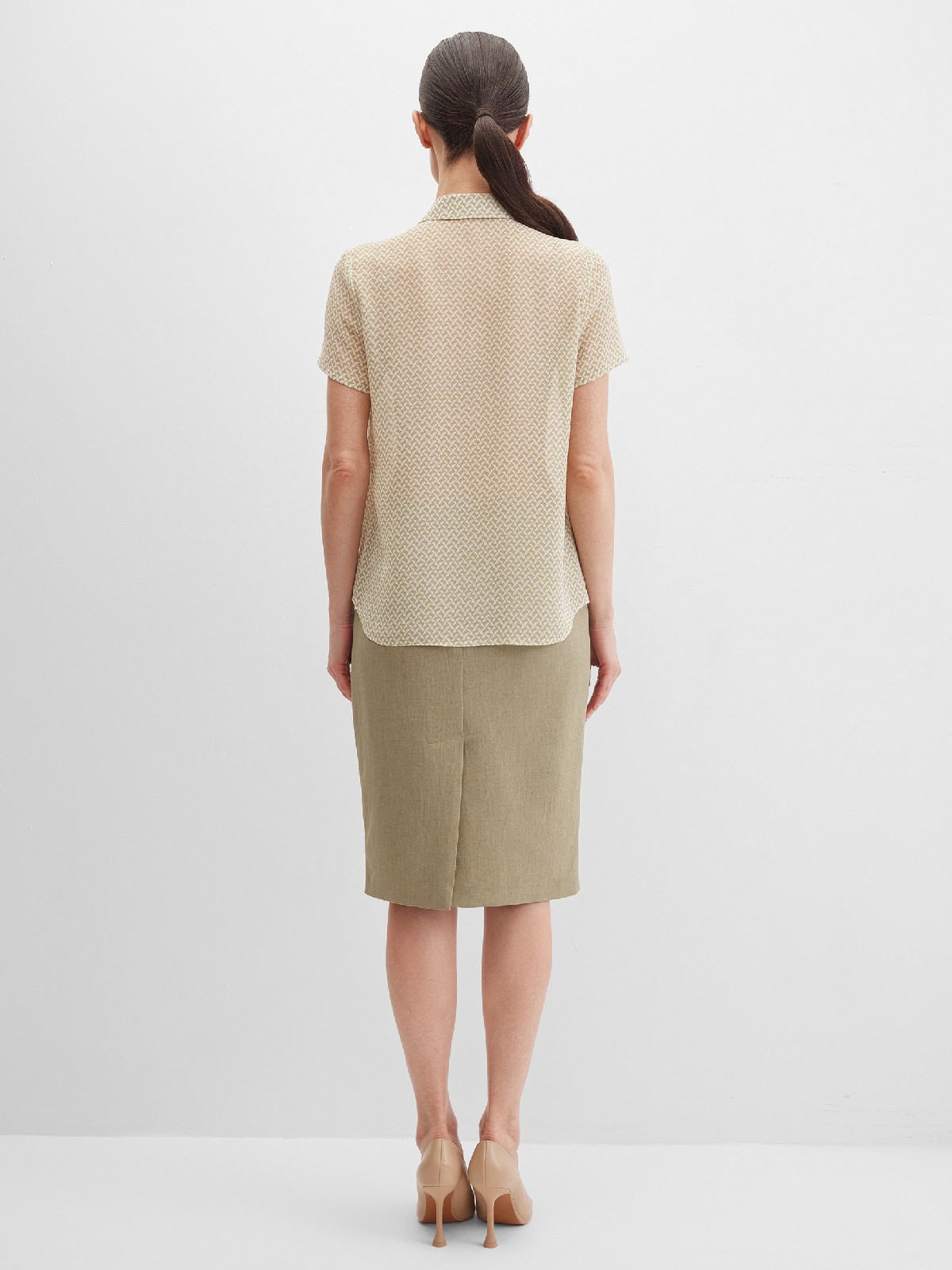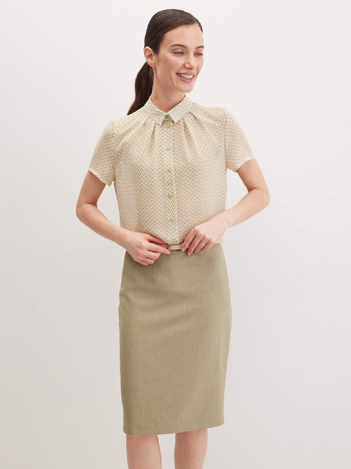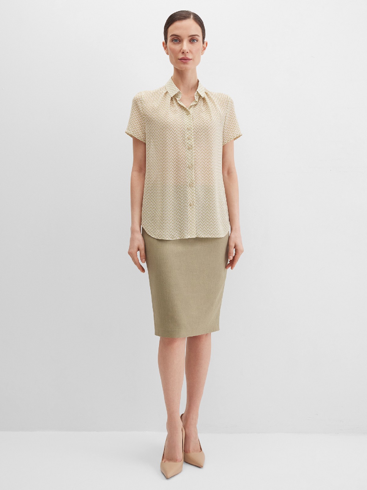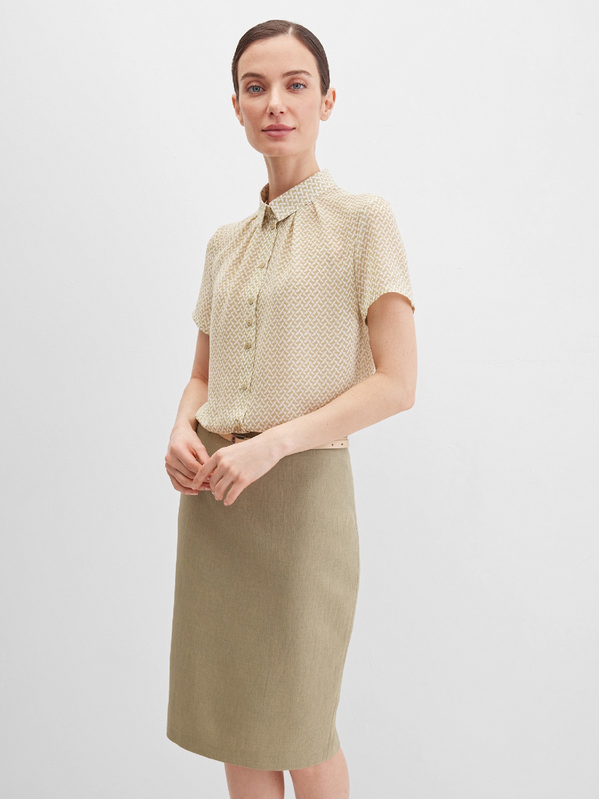 Блузка свободная на резинке с оригинальным вырезом и принтом