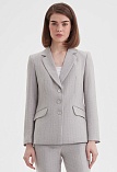 Роскошный меланжевый жакет с двухцветным цветовым эффектом из поливискозной ткани светло-серого цвета с вплетением разноцветных нитей, создавая эффект тонкой полоски, слегка удлиненный, приталенный, однобортный, английский воротник, прорезные карманы с клапаном, прямой борт, застежка на пуговицы, длинный втачной рукав, тонкие подплечники, модель на подкладке. Поливискозная ткань - смесовая ткань, в состав которой входят волокна вискозы и полиэстера.