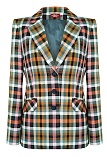 Модный классический жакет в клетку в энергичном и жизнерадостном цветовом сочетании - это символ стиля, универсальности и комфорта, такая модель  привлекает внимание, создавая образ уверенности и силы, слегка удлиненный, приталенный, однобортный, английский воротник, прорезные карманы с клапаном, прямой борт, застежка на пуговицы, длинный втачной рукав, тонкие подплечники, модель на подкладке. Комфортная посадка на любой размер. Модель выполнена из премиальной смесовой ткани.