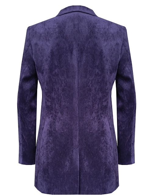 Жакет в классическом стиле в благородном приглушенном фиолетовом цвете из мягкой и пластичной вельветовой ткани в мелкий  рубчик, по своей структуре напоминающий бархат, комфортная длина прикрывающая бедра, приталенный, однобортный, английский воротник, прорезные карманы с клапаном, круглый борт, застежка на пуговицы, сзади шлица, без бокового шва - общий подкройной бочок у спинки и полочки, длинный втачной рукав, тонкие подплечники, модель на подкладке. Комфортная модель на любой тип фигуры!