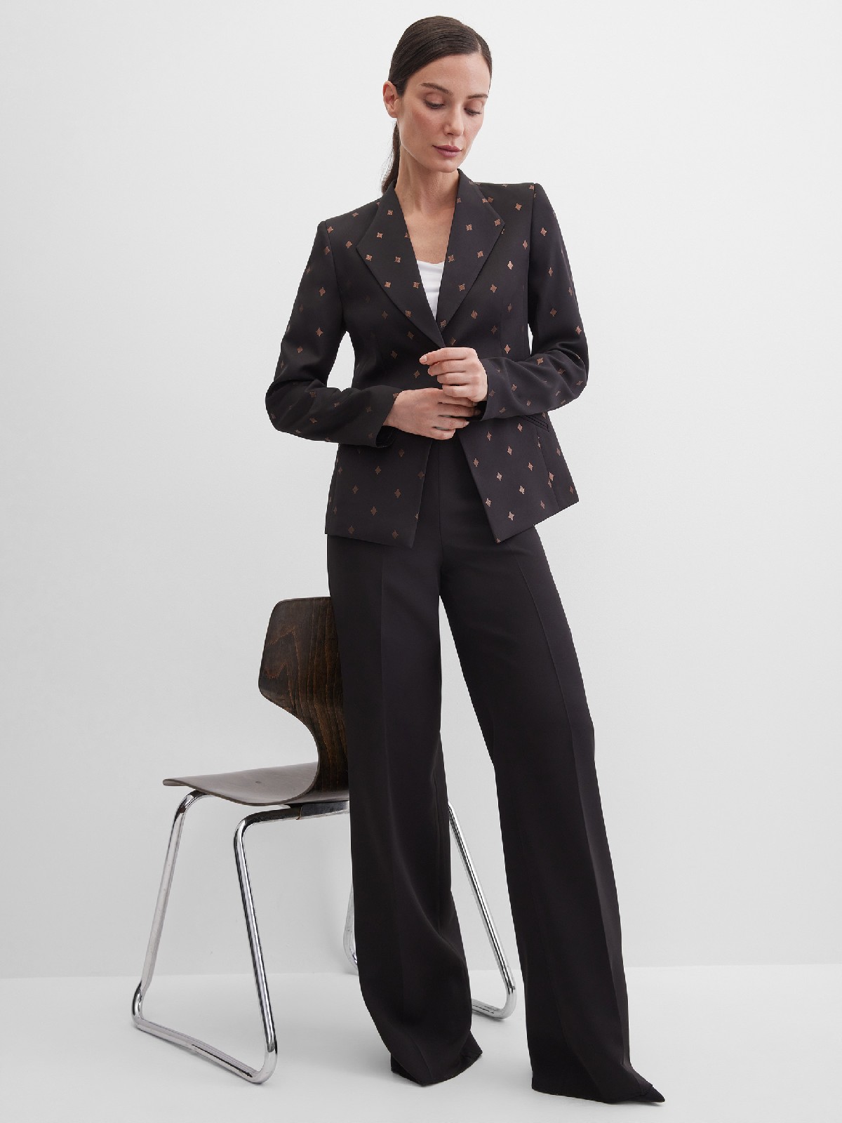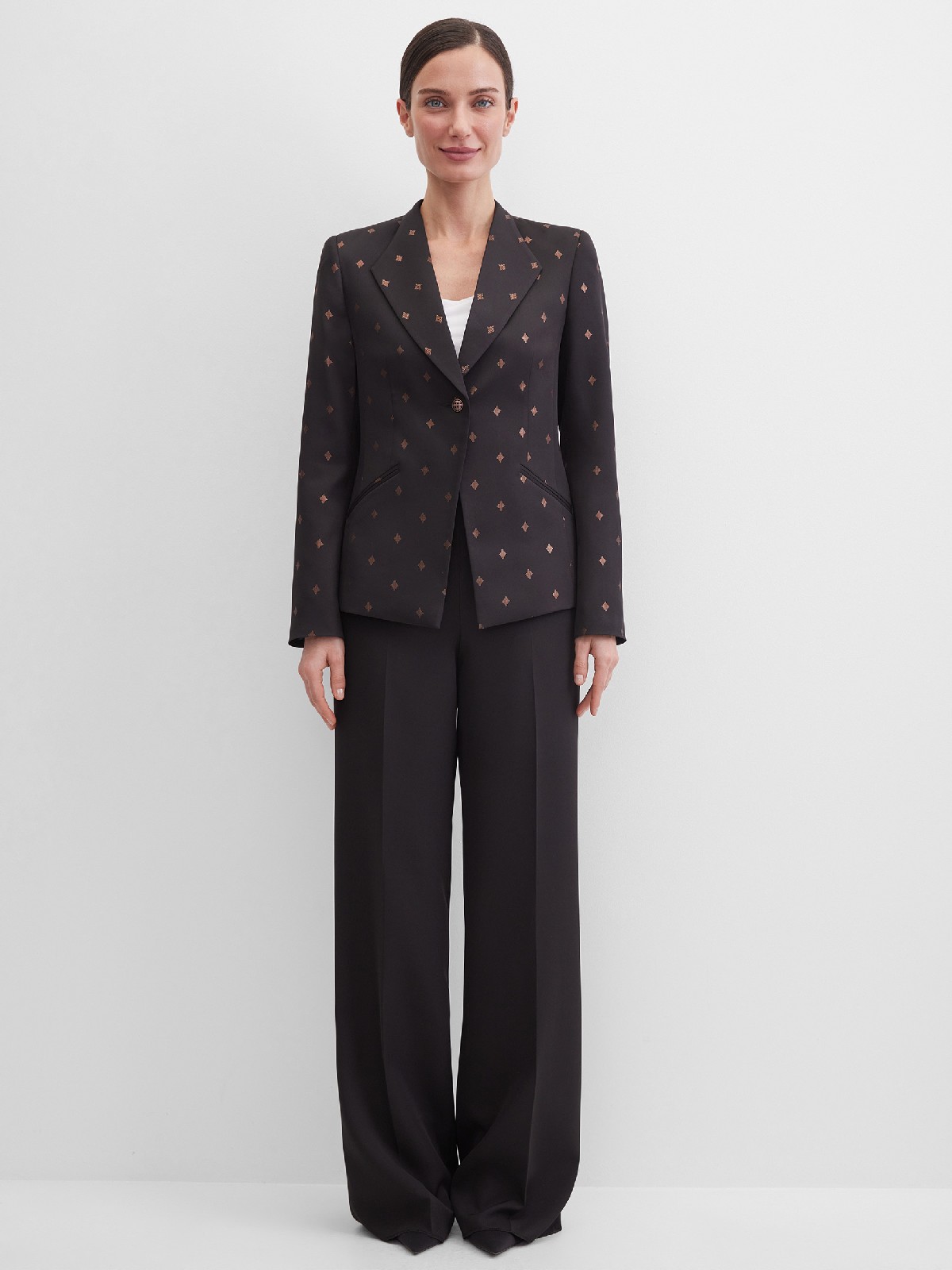 Пиджак с золотыми ромбами и оригинальным воротником