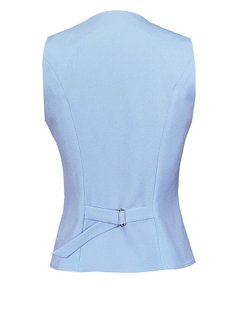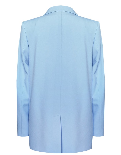 Удлиненный двубортный жакет свободного кроя из поливискозной ткани в сложном, пастельном оттенке голубого с холодным фиолетовым или серым подтоном, который ассоциируется с весной и нежностью, английский воротник, вертикальные прорезные карманы с листочкой, застежка на пуговицы в два ряда, сзади шлица, длинный втачной рукав, тонкие подплечники, модель  полностью на подкладке. Жакет оверсайз без акцента на талии гармонично смотрится на разных типах фигур (миниатюрных, пышных) и для всех возрастов