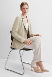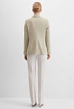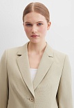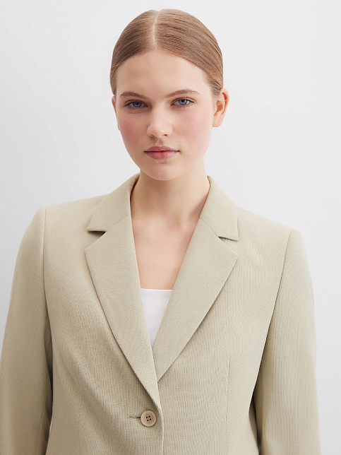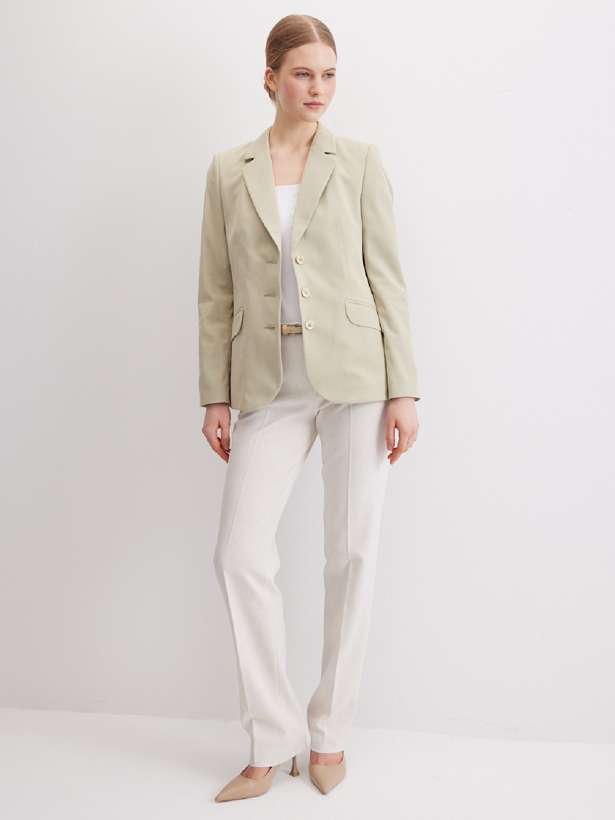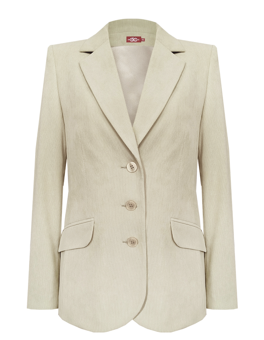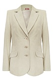 Универсальный классический жакет в спокойном и природном золотисто-оливковом цвете из мягкой и пластичной вельветовой ткани в мелкий продольный рубчик, по своей структуре напоминающий бархат, средняя длина, приталенный, однобортный, английский воротник, прорезные карманы с клапаном, круглый борт, застежка на пуговицы, без шлицы на спинке, длинный втачной рукав, тонкие подплечники, модель полностью на подкладке. Широкий размерный ряд и комфортная посадка на любой размер.