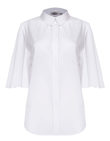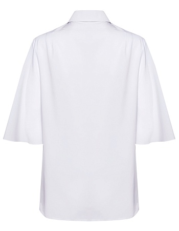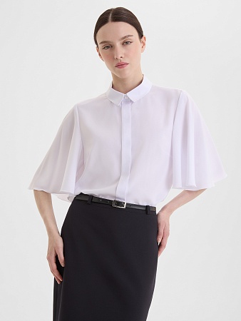 Базовый топ из легкой поливискозной ткани  белого цвета под пиджак или как самостоятельное изделие, приталенный,  средняя длина, круглый неглубокий вырез горловины, по бокам небольшие разрезы, что позволяет носить топ навыпуск.