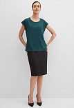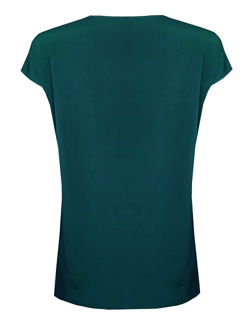 Незаменимая в базовом гардеробе свободная блуза-топ из тонкого и нежного материала с содержанием вискозы в насыщенном зеленом цвете. Элегантная модель средней длины со спущенным плечом и неглубоким круглым вырезом идет всем и красиво смотрится при любой длине шеи, отсутствие рукавов позволяет носить блузу под пиджак, ровный низ, украшают модель аккуратные боковые разрезы. Длина и умеренный объем позволяют носить ее навыпуск или заправленной.
