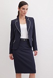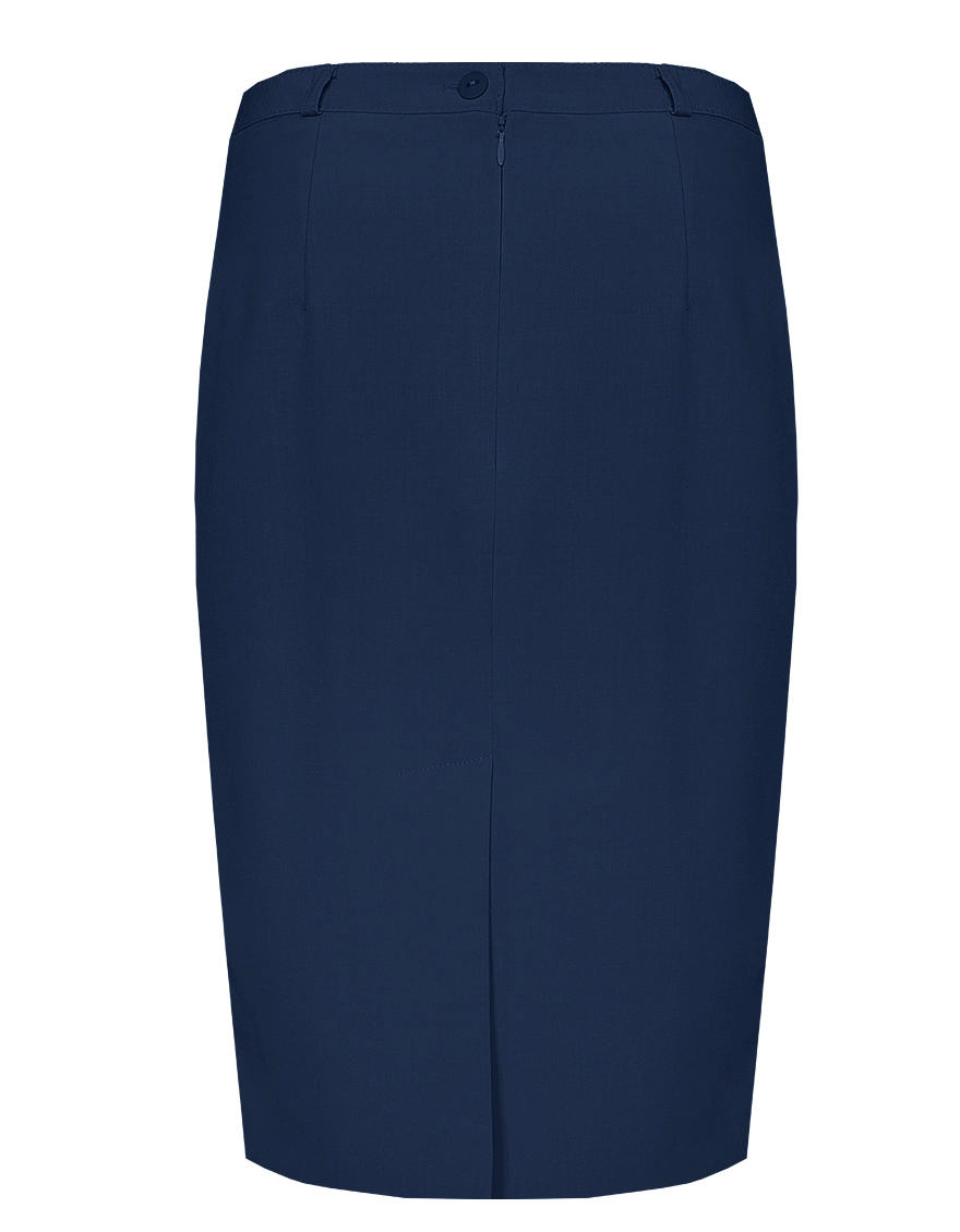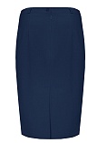 Классическая юбка благородного синего цвета из поливискозной ткани слегка зауженная книзу, на поясе со шлевками под ремень, посадка средняя, застежка на молнию и пуговицу в среднем шве спинки, сзади шлица, длина юбки миди - до середины колена, модель на подкладке.