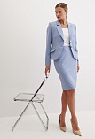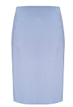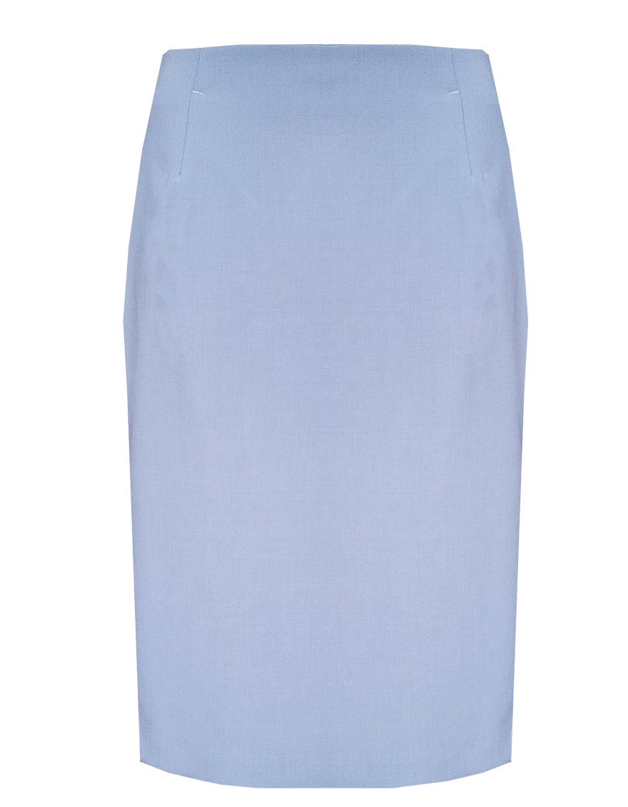 Классическая юбка из поливискозной ткани в серо-голубом цвете, сочетающий в себе спокойствие и расслабление голубого с элегантностью и стабильностью серого, слегка зауженная книзу, без пояса, на внутренней обтачке, посадка средняя, застежка на потайную молнию в среднем шве спинки, сзади шлица, длина юбки миди - до середины колена, модель на подкладке. Поливискозная ткань - смесовая ткань, в состав которой входят волокна вискозы и полиэстера.