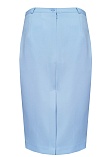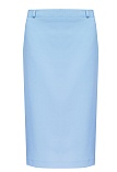 Классическая юбка прямого кроя слегка зауженная книзу из поливискозной ткани в сложном, пастельном оттенке голубого с холодным фиолетовым или серым подтоном, который ассоциируется с весной и нежностью, на поясе со шлевками под ремень, посадка средняя, застежка на потайную молнию и пуговицу в среднем шве спинки, сзади шлица для удобства при ходьбе, длина юбки миди - до середины колена, модель на подкладке.