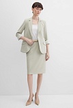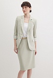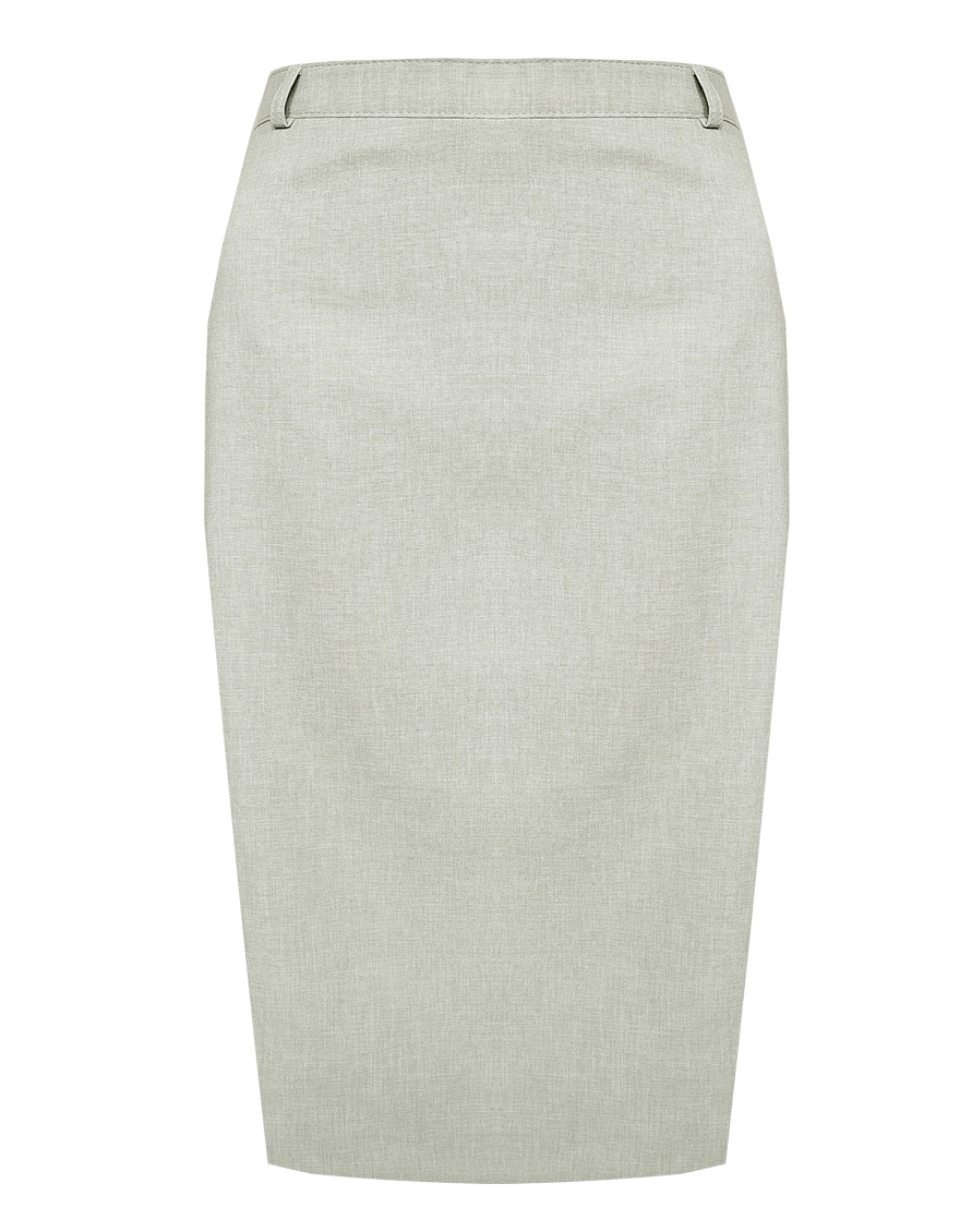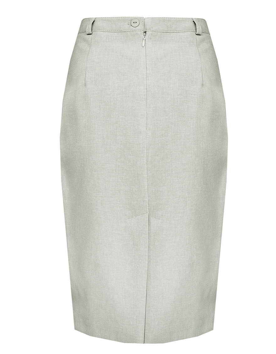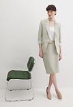 Легкая классическая юбка прямого кроя слегка зауженная книзу из смесовой ткани льняной структуры в нежном и приглушенном оттенке зеленого, который ассоциируется с весной и нежностью, на поясе со шлевками под ремень, посадка средняя, застежка на потайную молнию и пуговицу в среднем шве спинки, сзади шлица для удобства при ходьбе, длина юбки миди - до середины колена, модель на подкладке. Такая ткань отлично пропускает воздух, позволяя коже дышать.