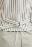 Короткий классический жилет из смесовой ткани льняной структуры с продольным чередованием полос в классическом сочетании цветов, обеспечивающие элегантность и универсальность, жилет под пиджак или как самостоятельное изделие под любую рубашку или блузку, однобортный, приталенный, застежка на пуговицы, v-образный вырез горловины, хлястики на спинке позволяют регулировать ширину изделия по талии, модель без карманов и подкладки.