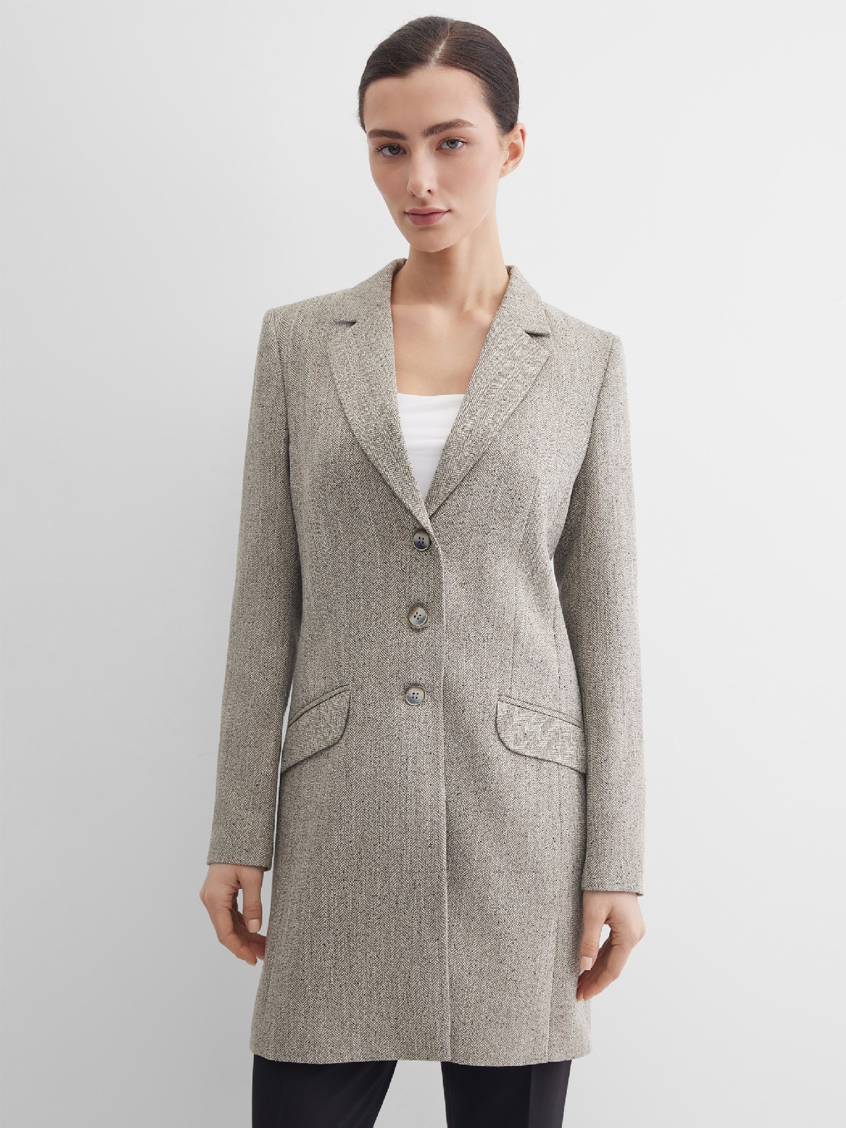 Пиджак длинный с твидовым рисунком