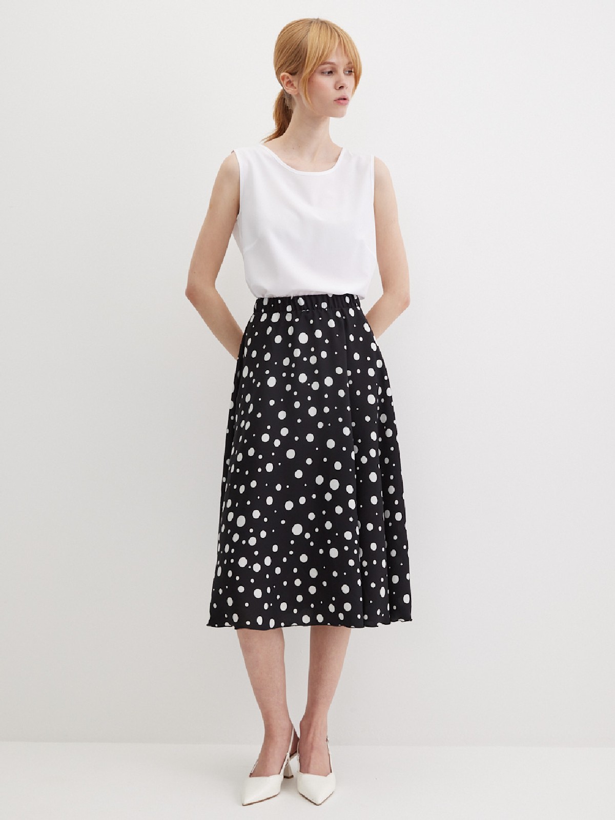Блузка свободная на резинке с оригинальным вырезом и принтом