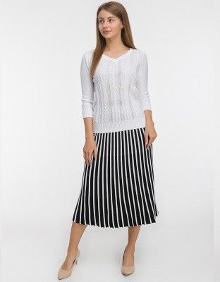 Джемпер белый с плетеными косами с дл.рукавом Vвырез