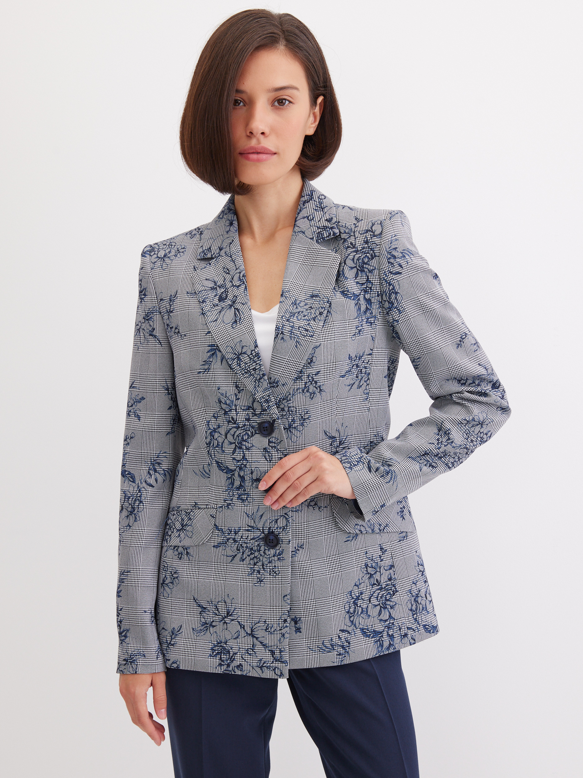 Пиджак с цветочным принтом на клетке