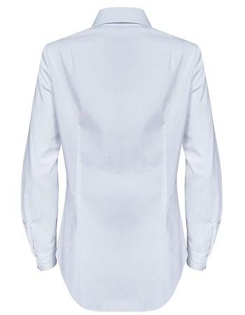 Блузка рубашка из сорочечной ткани в хрустально-розовом цвете с цветочной  вышивкой шелковыми нитками в виде  вставки из нежного и ажурного  кружева, высокое качество хлопка, приталенный силуэт, рубашечный отложной воротник, супатная застежка -  потайная застежка на пуговицы, которые спрятаны между слоями ткани и не видны, модель удлиненная с фигурным низом, втачной рукав с длиной 3/4 на узком манжете.