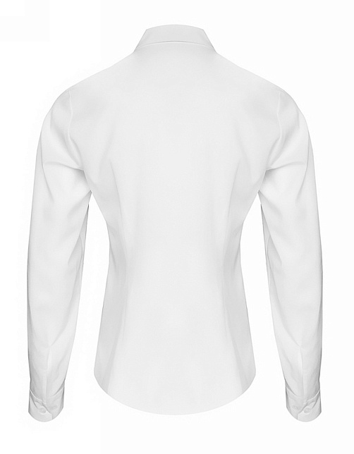 Универсальная блуза в базовом цвете шампань из качественной поливискозной ткани,  средняя длина, приталенная, рубашечный воротник на стойке, по горловине заложены мягкие складки, застежка на мелкие пуговицы, длинный втачной рукав на манжете с функциональной петлей и пуговицей.