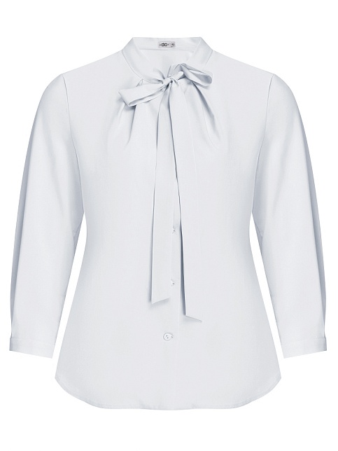 Струящаяся блузка из шелковистой вискозы  средней длины, слегка приталенная, по горловине заложены складки, рубашечный воротник на стойке, застежка на мелкие пуговицы, длина рукава 3/4 на узком манжете.