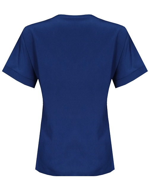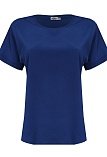Легкая изящная блуза свободная блуза из тонкого и нежного материала с содержанием вискозы в классическом синем цвете. Элегантная модель средней длины, свободный крой дарит максимальную свободу движений и комфорт, цельнокроенный короткий рукав с манжетом, повторяющий нижнюю часть рукава, круглый вырез горловины обработан узким кантом и красиво смотрится при любой длине шеи, фигурный низ с аккуратными боковыми разрезами. Длина и умеренный объем позволяют носить ее навыпуск или заправленной.