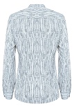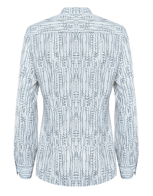 Изысканная блуза из шелковистого и струящегося материала с содержанием  вискозных волокон, нейтральный молочный фон придает образу легкость и утонченность, а абстрактный принт в натуральных оттенках делает его идеальной базой для создания минималистичных, но впечатляющих ансамблей, средняя длина, приталенная, небольшой воротник стойка, по цельнокроеной кокетке спереди заложены мягкие складки, застежка на пуговицы, длина рукава 3/4 на манжете с функциональной петлей и пуговицей.