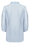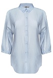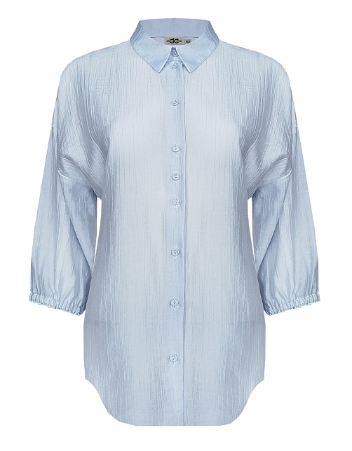 Комфортная блуза в нежно-голубом оттенке из фактурной ткани "жатка" с характерной легкой "помятостью", спущенная линия плеча выглядит мягче и уютнее, особый крой без вытачек придает изделию свободный и расслабленный вид, отложной воротник, удлиненная с фигурным низом, застежка на пуговицы, рукав 3/4 собран на резинку. Модель актуальна для женщин любого размера и телосложения, даже если фигура далека от идеала. Уход не требует особых усилий и является удобным вариантом для повседневной носки.