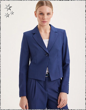 Брюки свободного кроя в элегантном синем цвете из поливискозной ткани с мелкозернистым рисунком, придающий изделию дорогой вид и особый лоск, средняя посадка, на внутренней обтачке и шлевками под ремень, застежка на молнию и пуговицу спереди, умеренно объемные в области бедер за счет складок по передней части, боковые карманы с отрезным бочком, заутюженные стрелки, низ обработан от осыпания ткани, но не подогнут - что позволяет скорректировать длину брюк под свой рост, без карманов и подкладки.