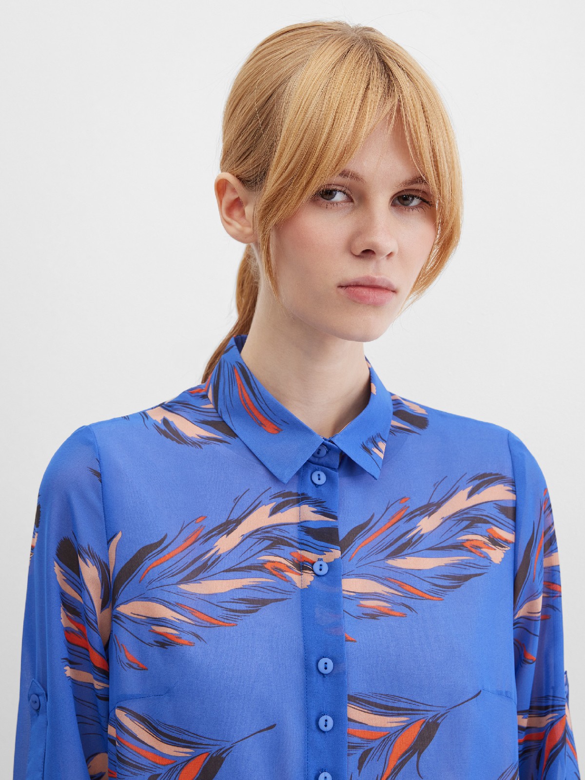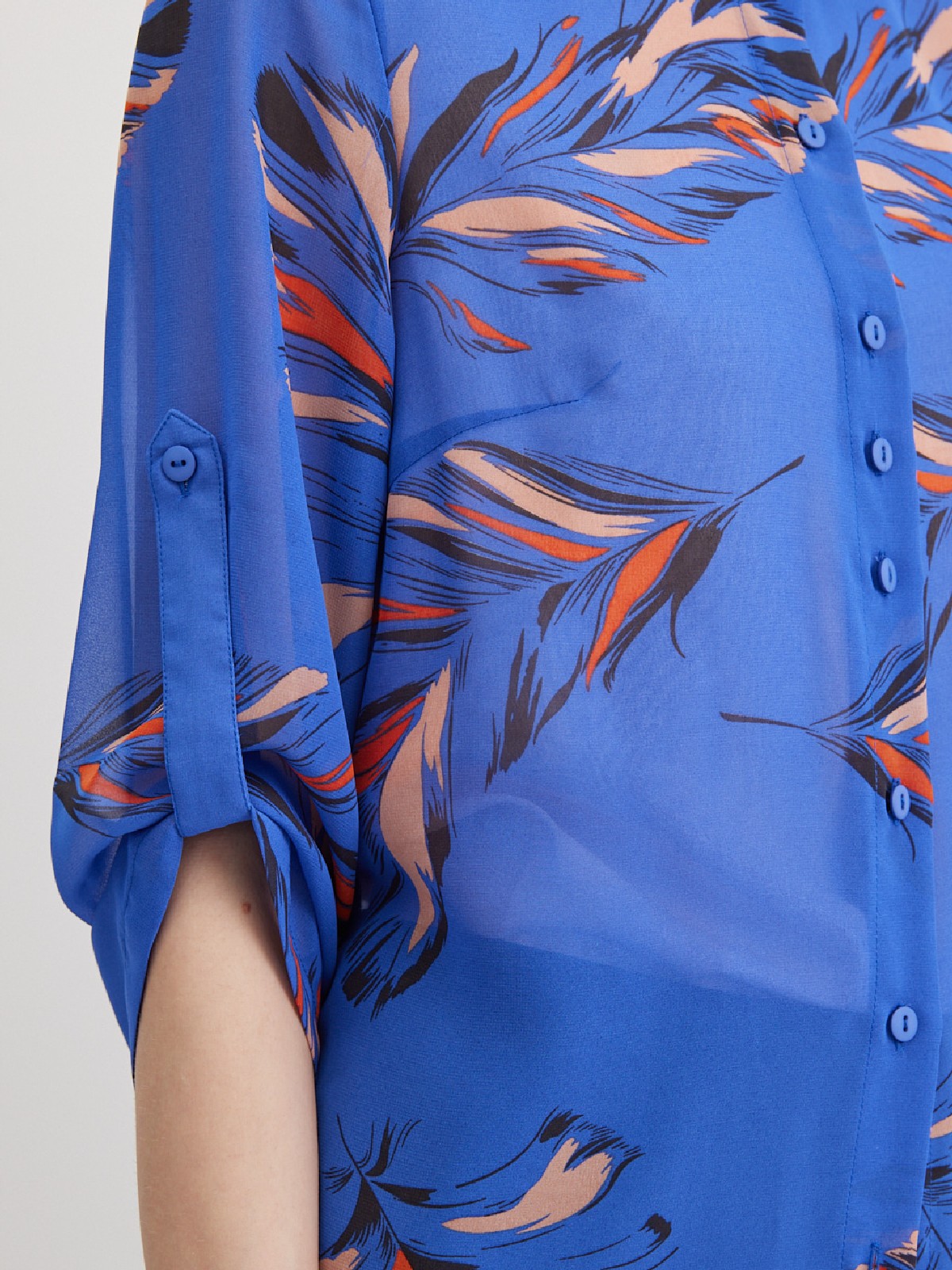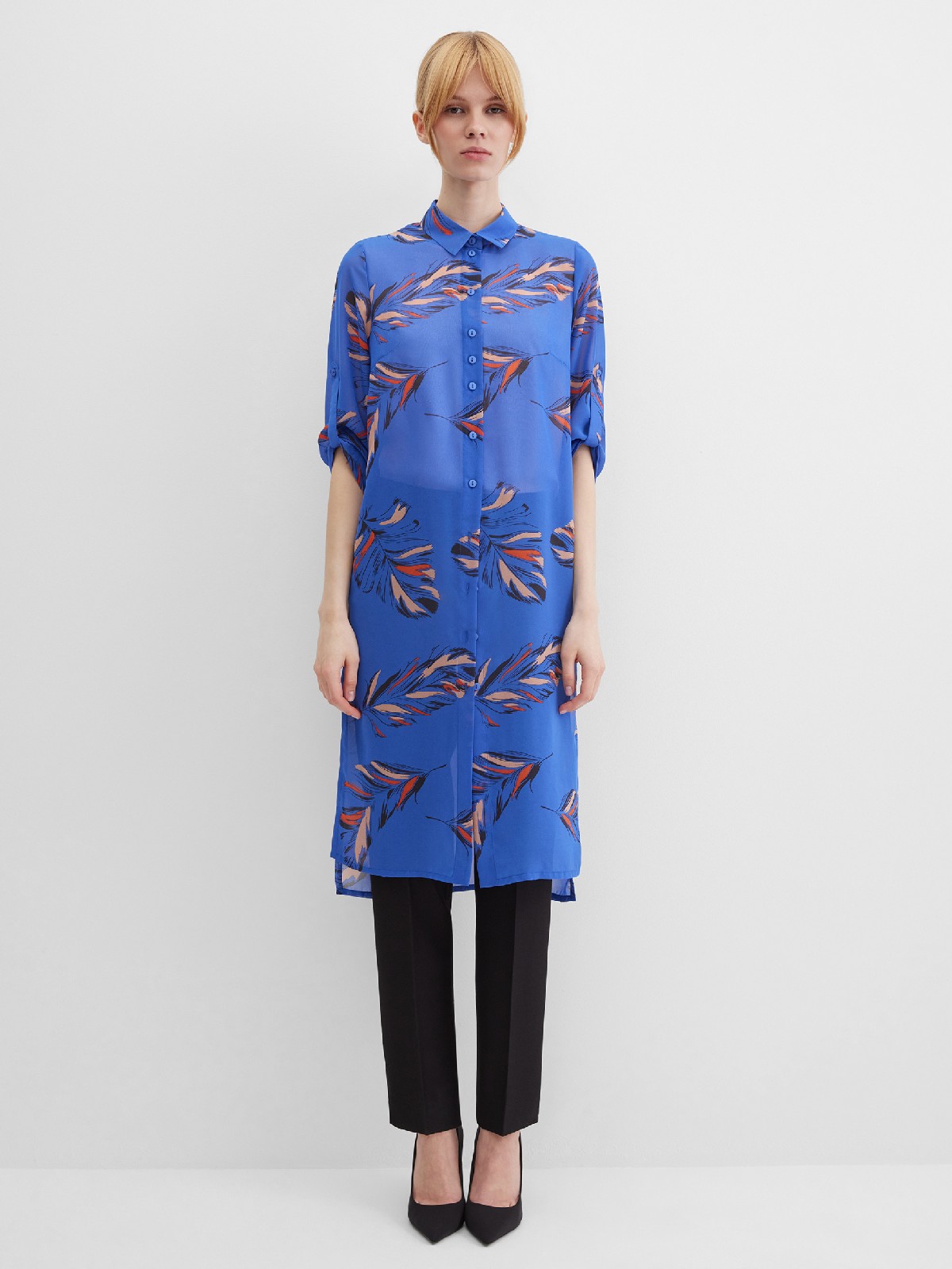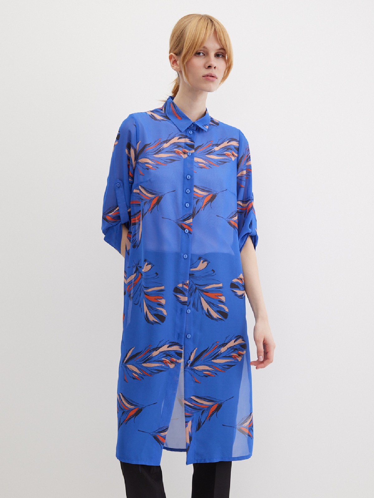 Блузка-туника длинная из шифоновой ткани с ярким принтом