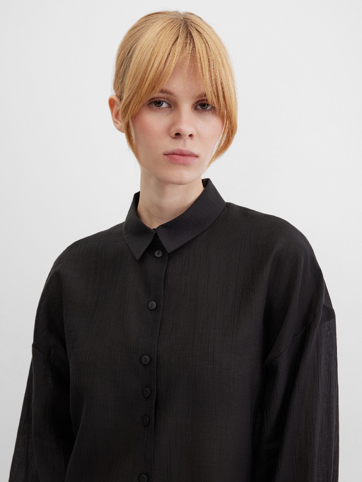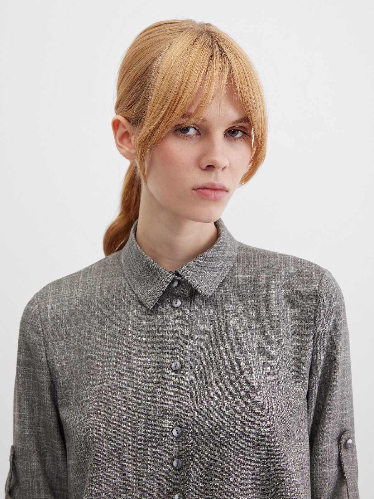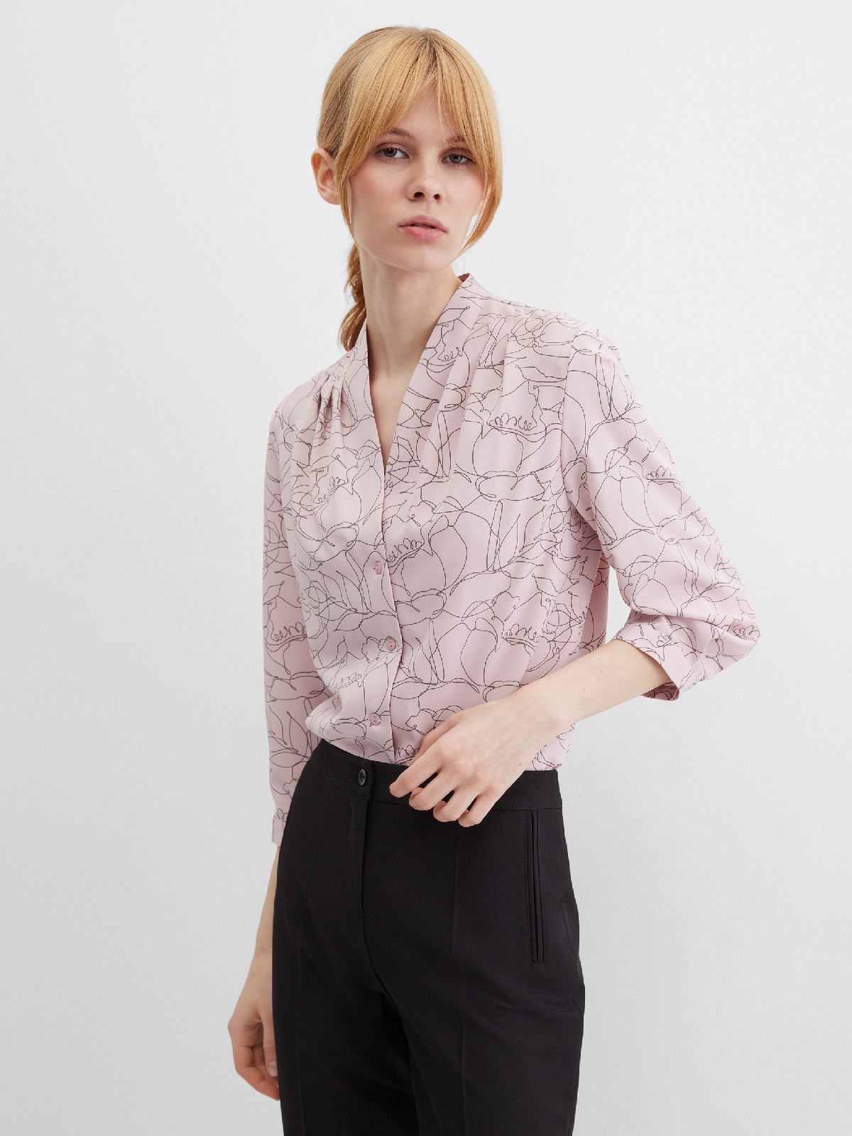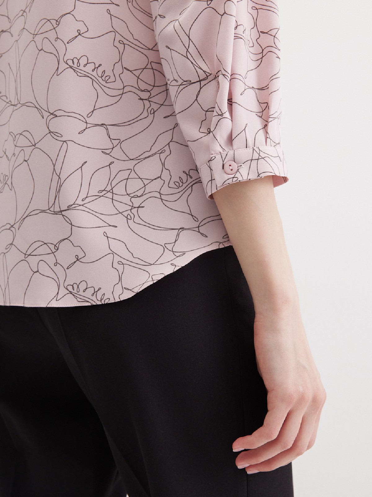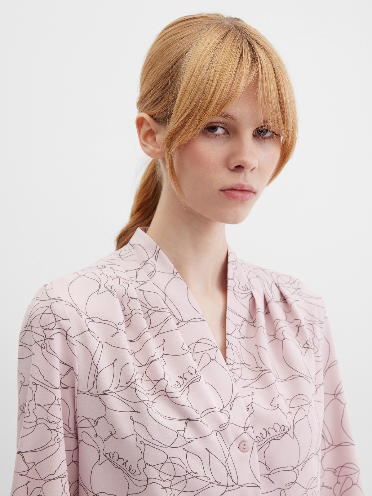 Блузка-туника длинная из шифоновой ткани с ярким принтом