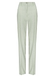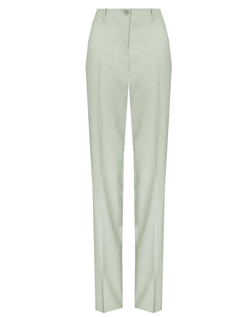 Легкие классические брюки прямого кроя из смесовой ткани льняной структуры в нежном и приглушенном оттенке зеленого, удобная резинка по талии обеспечивает удобство и комфорт, не стесняя и не вызывая дискомфорта, шлевки под ремень, посадка средняя, застежка на молнию и пуговицу спереди, заутюженные стрелки, низ обработан от осыпания ткани, но не подогнут - это позволяет скорректировать длину брюк под свой рост, без подкладки и карманов. Такая ткань отлично пропускает воздух, позволяя коже дышать