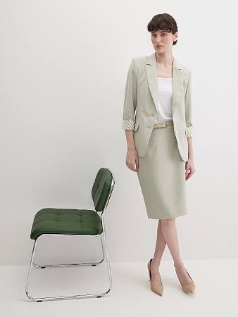 Легкие классические брюки прямого кроя из смесовой ткани льняной структуры в нежном и приглушенном оттенке зеленого, удобная резинка по талии обеспечивает удобство и комфорт, не стесняя и не вызывая дискомфорта, шлевки под ремень, посадка средняя, застежка на молнию и пуговицу спереди, заутюженные стрелки, низ обработан от осыпания ткани, но не подогнут - это позволяет скорректировать длину брюк под свой рост, без подкладки и карманов. Такая ткань отлично пропускает воздух, позволяя коже дышать