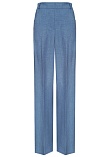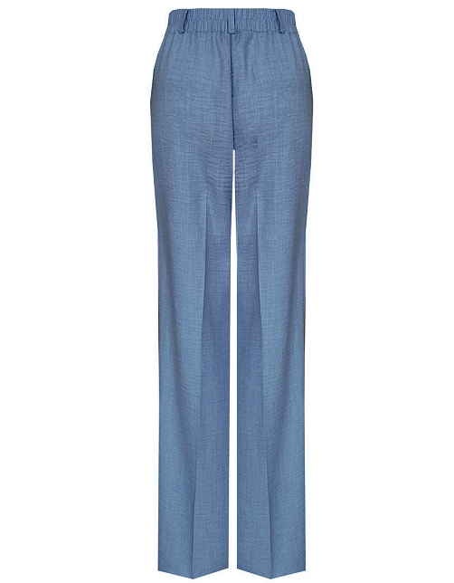 Легкие брюки свободного кроя из смесовой ткани с хлопком и вискозой в самом популярном цвете джинсовой ткани - индиго с легким меланжевым эффектом, на резинке, шлевки под ремень, посадка средняя, имитация гульфика заменяет застежку на молнию и пуговицу, боковые карманы с отрезным бочком, заутюженные стрелки, низ обработан от осыпания ткани, но не подогнут - это позволяет скорректировать длину брюк под свой рост, без подкладки. Такая ткань отлично пропускает воздух, позволяя коже дышать.